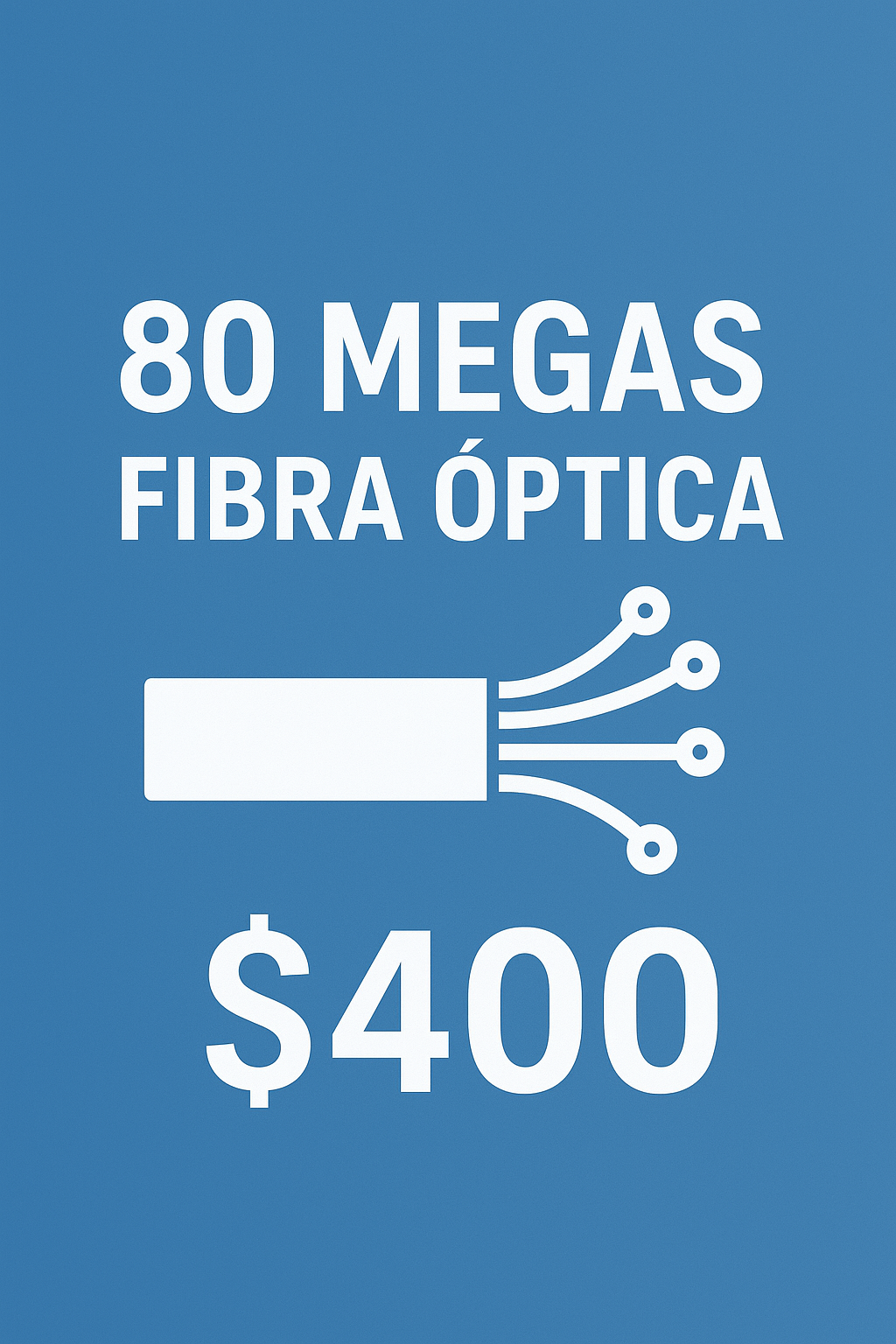 El Paquete 80 Megas Fibra Óptica está diseñado para hogares y negocios que requieren una conexión potente, rápida y con excelente estabilidad. Gracias a la fibra óptica, disfrutarás de mayor velocidad, menor latencia y un rendimiento superior incluso con muchos dispositivos conectados.